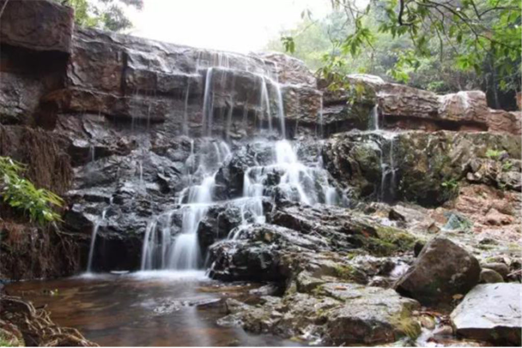 在仙女池戲水之后,我們沿著小路先后穿越了大片叢林和跨越了將軍橋,還觀看了可以遮風(fēng)避雨的寨亭,以及讓人乞福托運的幸運樹等風(fēng)景點。一路上,那些大小各異的泉潭,奇特的砂頁巖,的確使我們賞心悅目;而那些清澈的山澗,飛流直下的瀑布,更是讓我們心曠神怡。 難怪,同行的一位詩人會情不自禁地以《游欽州八寨溝有感》為題賦詩一首了,詩云:“相邀詩友出茶寮,閑步幽溝遠鬧囂。仙女懷中沐澗水,將軍頭上竊一瓢。喜觀遍地野蘭長,驚訝參天鐵木搖。此景安能移北海?汲泉煮茗也逍遙!”
