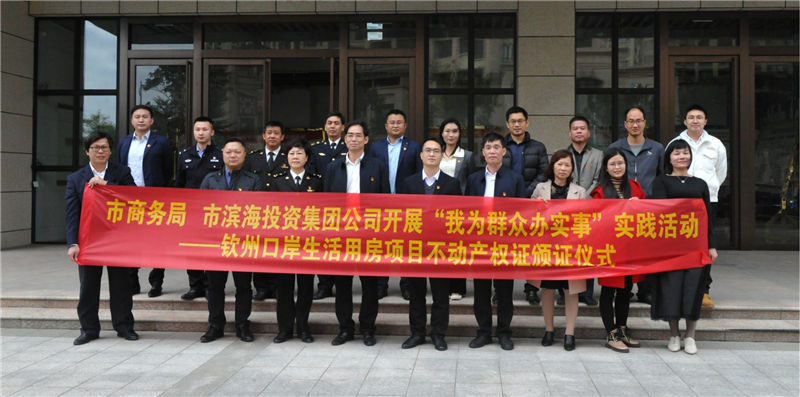 2021年11月23日上午,市商務(wù)局、市濱海投資集團(tuán)公司在市濱海投資集團(tuán)公司12樓黨員活動(dòng)室聯(lián)合開(kāi)展“我為群眾辦實(shí)事”主題實(shí)踐活動(dòng),舉行欽州口岸生活用房項(xiàng)目不動(dòng)產(chǎn)權(quán)證頒證儀式。市濱海投資集團(tuán)公司黨委副書(shū)記卜玉聲同志主持會(huì)議,市商務(wù)局黨組書(shū)記、一級(jí)調(diào)研員王紹平同志出席會(huì)議并講話(huà)。