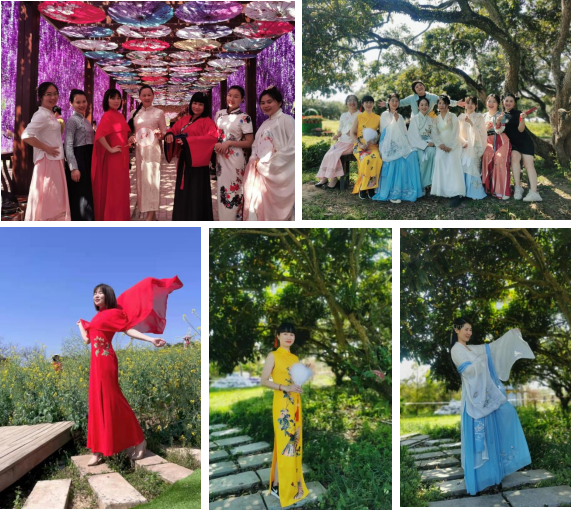 素質(zhì)拓展過后,婦委會(huì)開展了濱海巾幗別樣“美” 的游園展風(fēng)采活動(dòng)。女職工紛紛換上古色古香的漢服、旗袍,前往花的海洋感受春的氣息,進(jìn)行賞花、合影,將煩惱與壓力釋放在花香鳥語中。