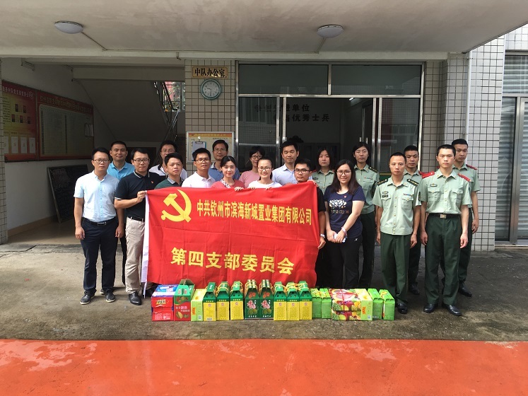 在中國人民解放軍建軍91周年之際,欽州市濱海新城置業(yè)集團有限公司第四黨支部前往武警欽州邊防支隊勤務(wù)中隊開展擁軍慰問活動。