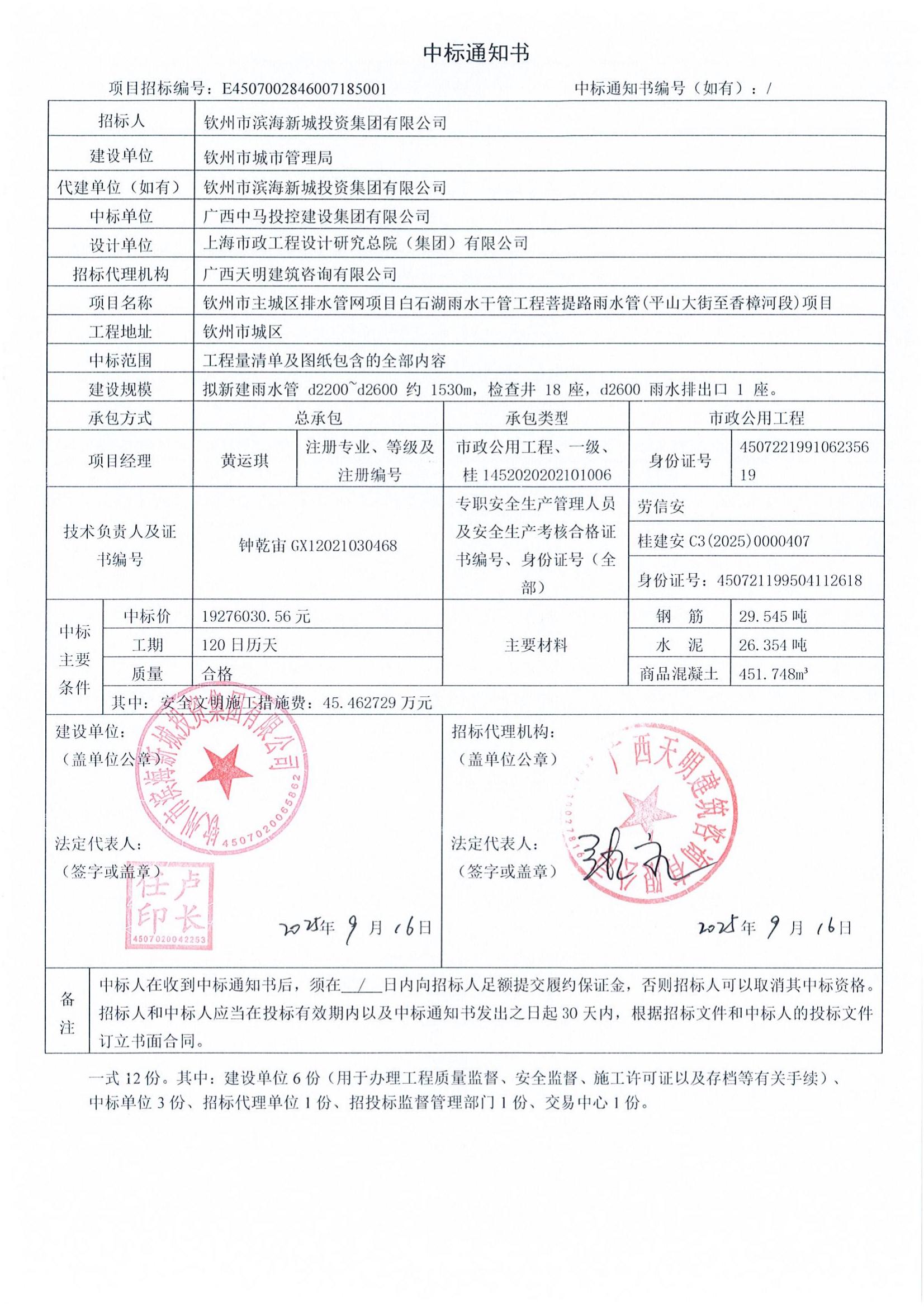 欽州市主城區(qū)排水管網(wǎng)項(xiàng)目白石湖雨水干管工程菩提路雨水管(平山大街至香樟河段)項(xiàng)目中標(biāo)結(jié)果公示