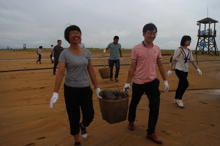 風(fēng)雨停歇之時(shí),第一、二黨支部全體黨員捋起袖子,提起垃圾筐,在黃金浴場(chǎng)上進(jìn)行“拉網(wǎng)式”清撿垃圾活動(dòng)。活動(dòng)中,大家分工協(xié)作,團(tuán)結(jié)互助,忙得不亦樂乎,現(xiàn)場(chǎng)一片熱火朝天的景象。沙灘上的垃圾大多為煙蒂、石頭、礦泉水瓶等,考慮群眾在沙灘上大都赤腳走路,為了群眾的安全,黨員們將沙灘上的貝殼也都一并清撿,清除貝類劃傷的風(fēng)險(xiǎn)。其中一位老黨員向大家說到:“大家一定不要覺得清潔活動(dòng)就只是單純地?fù)炖?,我們撿的可都?lsquo;黃金’啊,別看小小一個(gè)煙蒂,我們把它撿起來了,環(huán)境就美了,群眾就會(huì)更加自覺了,那么誰也不舍得扔下手中的這枚‘黃金’了。所以,我們黨員今天的清潔行動(dòng)不僅是推行群眾文明出行的理念,更是引導(dǎo)群眾自覺保護(hù)環(huán)境,關(guān)愛自然,從而讓清潔、環(huán)保成為每個(gè)人的責(zé)任。”老黨員看似平淡的話語,卻是對(duì)我們的諄諄教導(dǎo),進(jìn)一步激發(fā)了我們身為一名共產(chǎn)黨員的責(zé)任感和使命感,同時(shí)也讓我們深刻認(rèn)識(shí)到生態(tài)環(huán)境建設(shè)和保護(hù)迫在眉睫。
