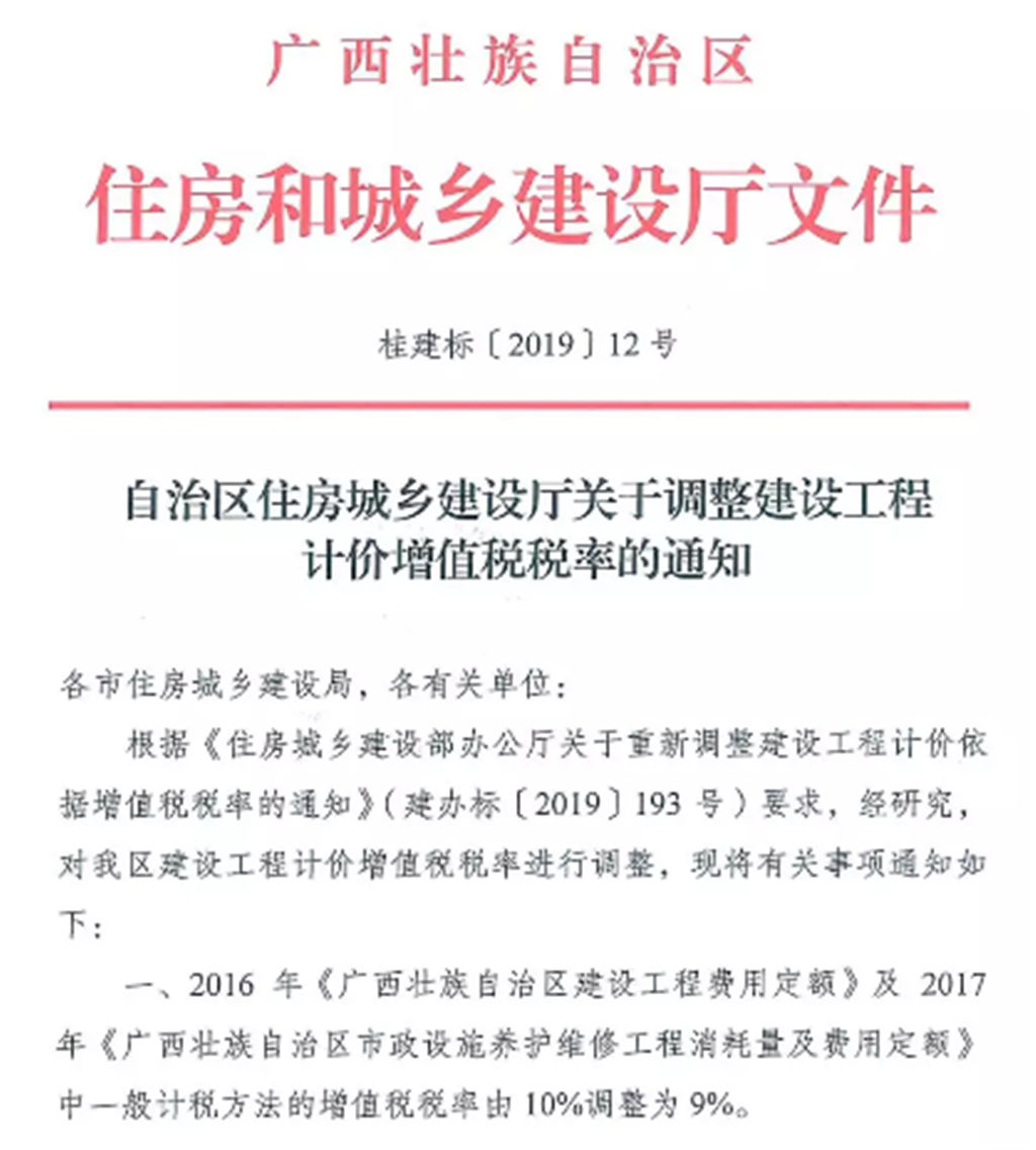 自治區(qū)住房城鄉(xiāng)建設(shè)廳關(guān)于調(diào)整建設(shè)工程計價增值稅稅率的通知