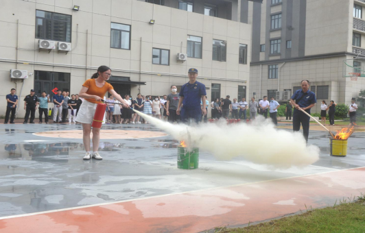 (職工在進(jìn)行滅火器使用演練) |