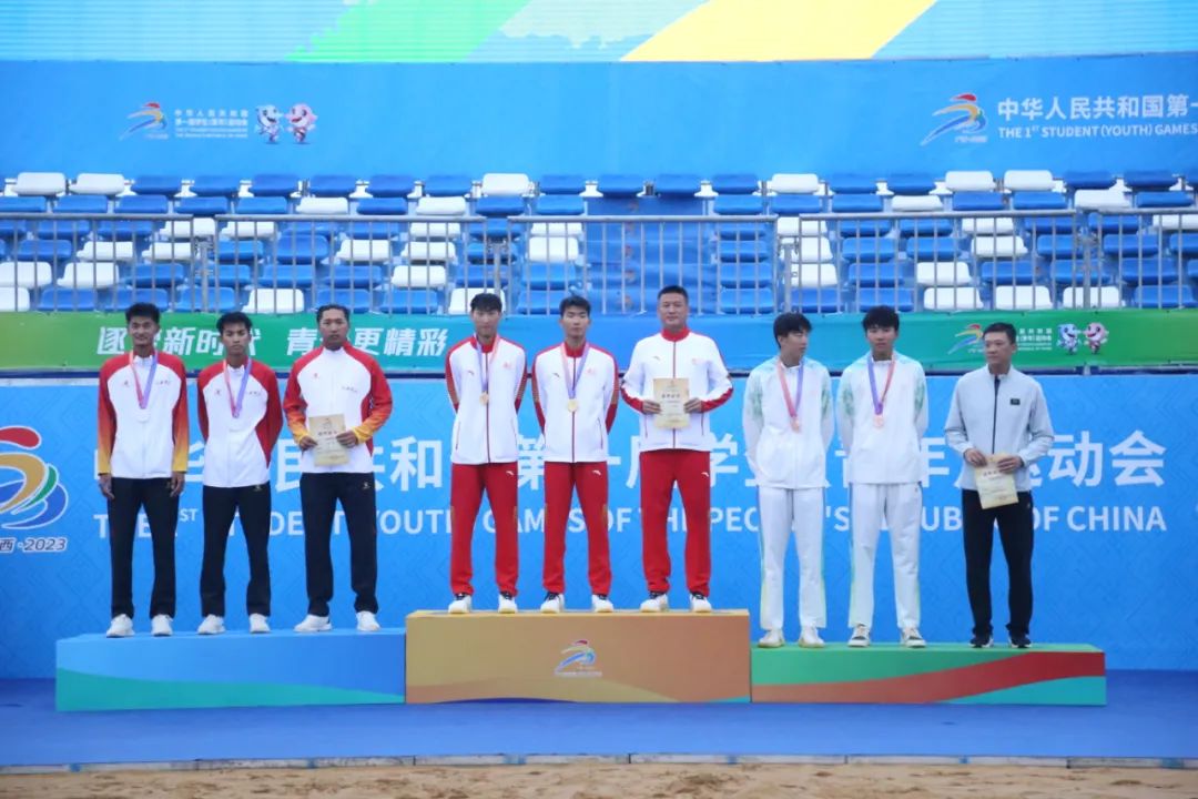 10月29日,第一屆全國學生(青年)運動會沙灘排球(公開組)決賽在欽州茅尾海沙灘排球訓練基地舉行,南京市一隊的周勇吉/徐棕琪憑借出色發(fā)揮,以2:0戰(zhàn)勝黃浦區(qū)一隊的白鵬碩/呂志輝,奪得冠軍。