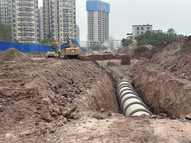 菩提路項目:該項目凌云街至平山東大街段已于11月1日正式開工,施工單位已進場完成全段的清表工作及不良土的清除,已完成洗車平臺及工地大門等施工臨時設施建設,現(xiàn)開挖約300米污水管道、300米雨水管道及完成雨污水管各250米回填砂。