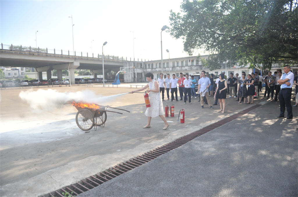 授課后,在張教官帶領(lǐng)下開(kāi)展了人員密集公共場(chǎng)所疏散及滅火器操作的實(shí)物演練。
