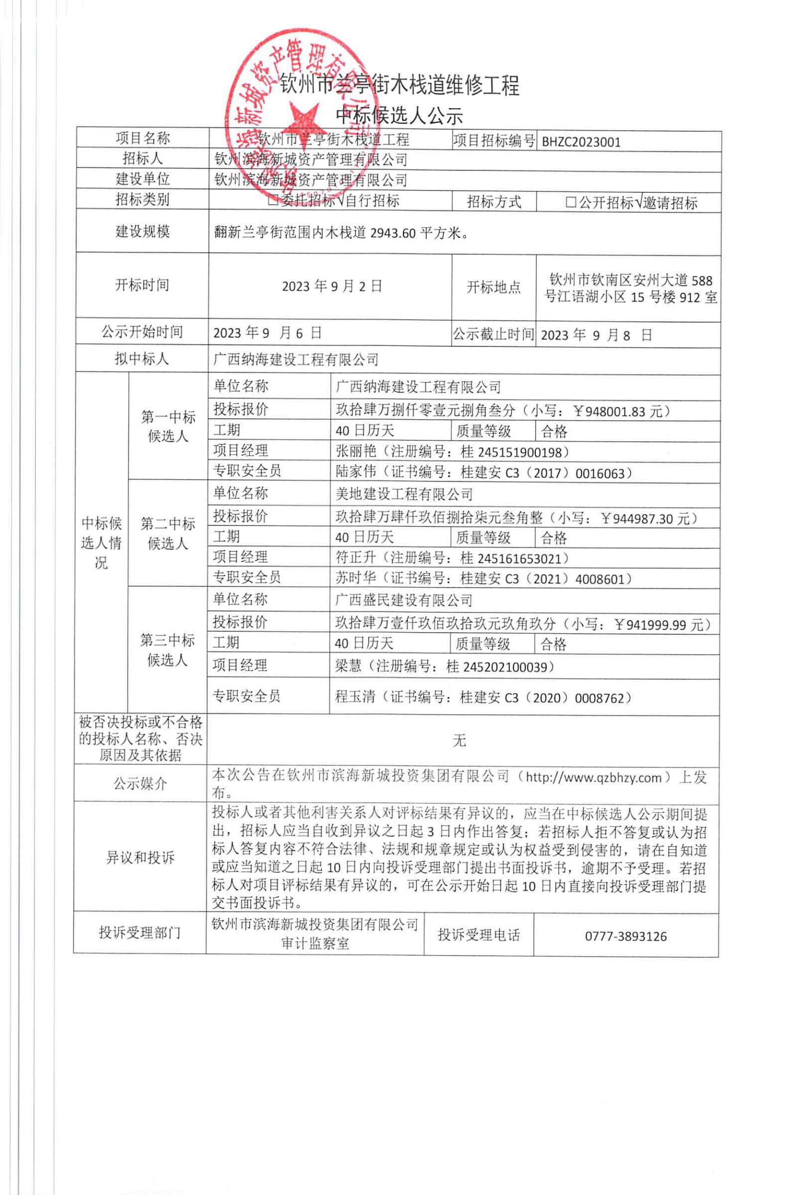 蘭亭街木棧道維修中標(biāo)候選人公示