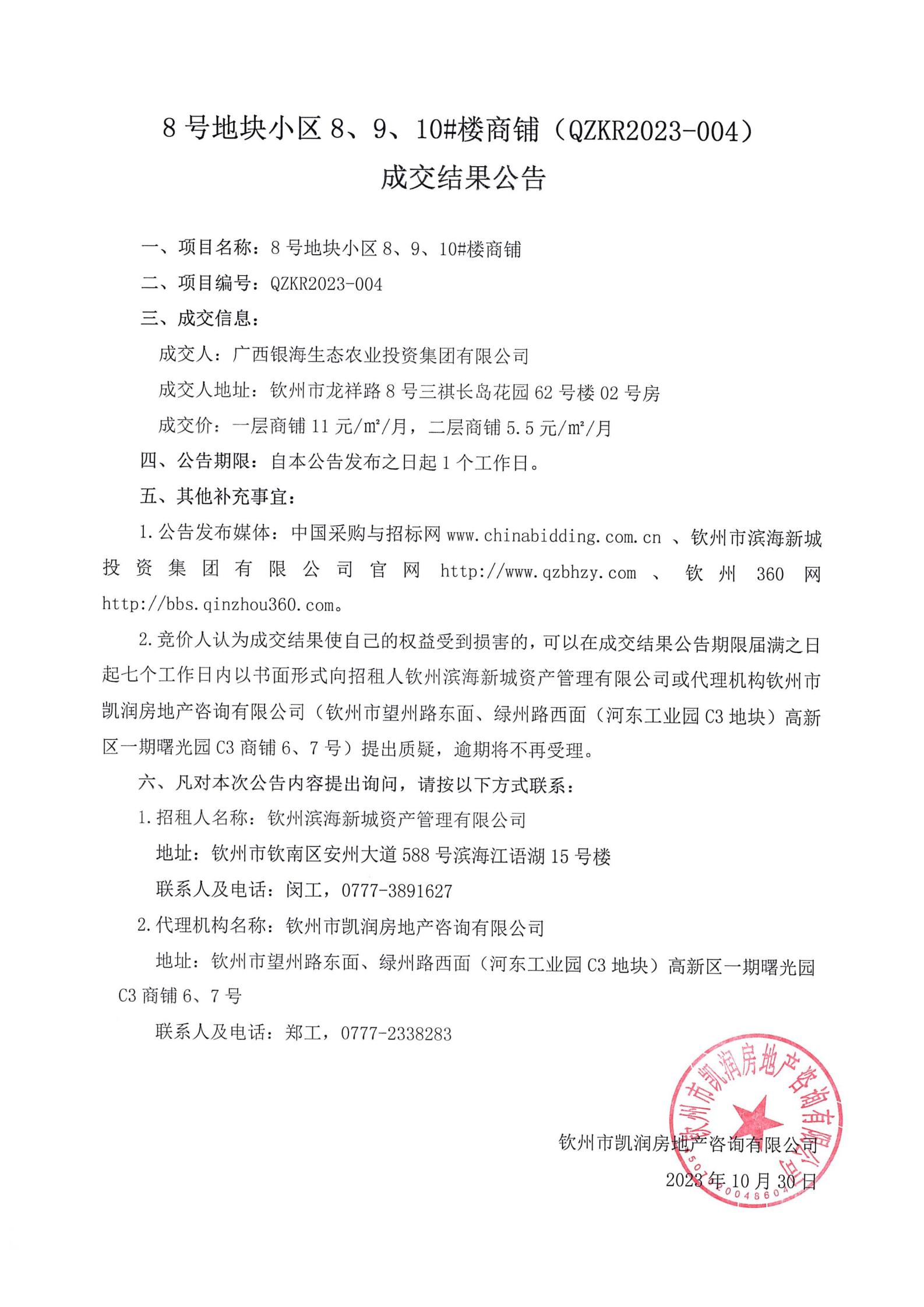 8號地塊小區(qū)8、9、10#樓商鋪成交結(jié)果公告
