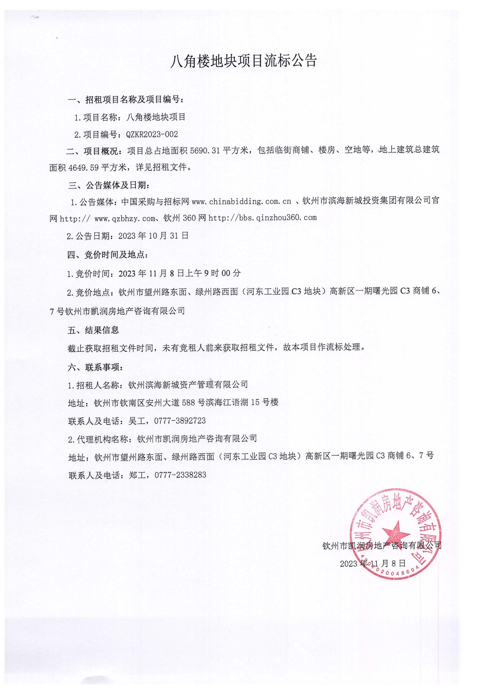 八角樓地塊項目流標(biāo)公告