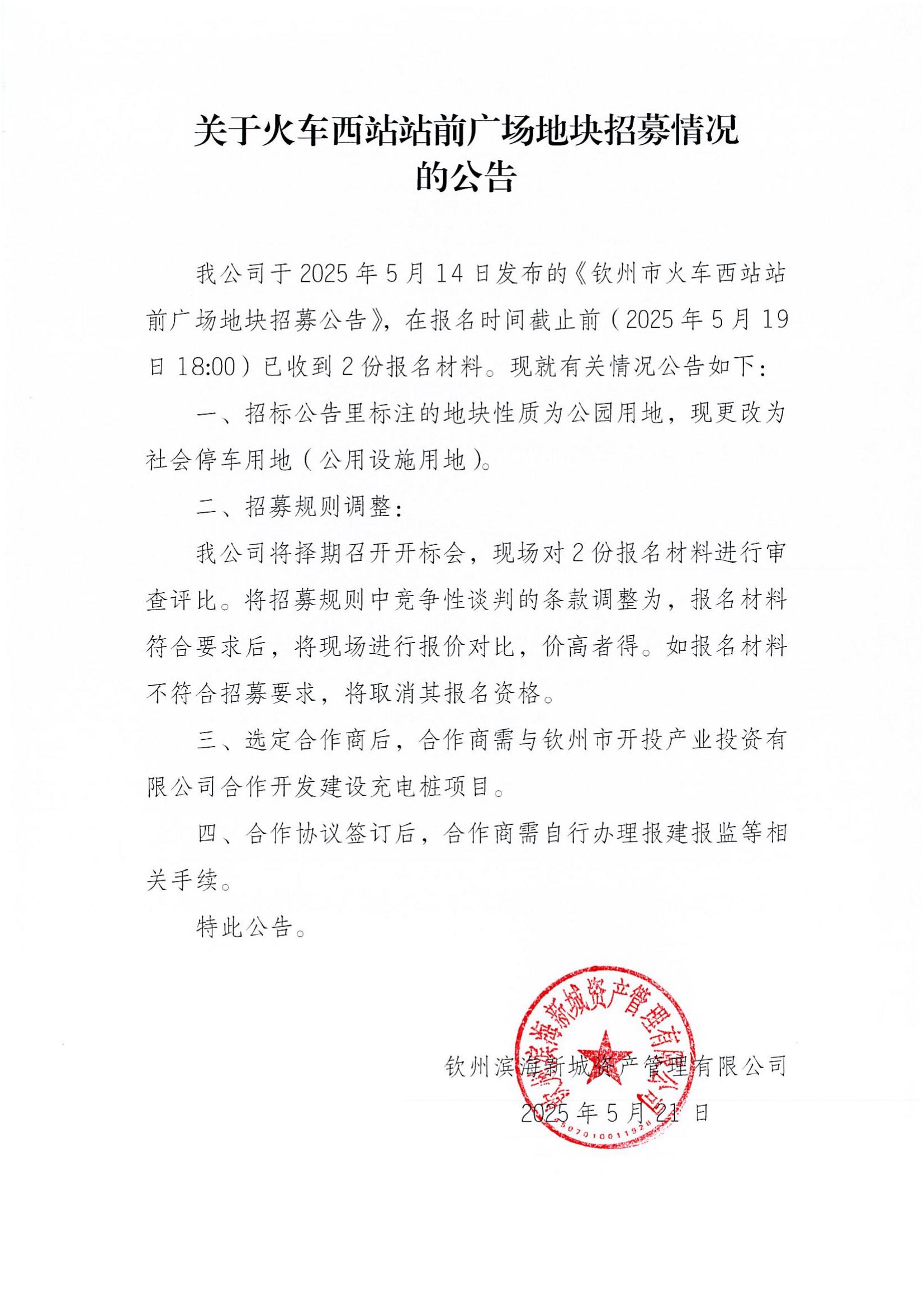 關于火車西站站前廣場地塊招募情況的公告
