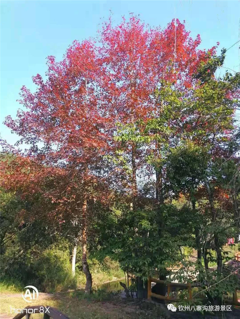 很多人都說,八寨溝好像是沒有冬天的。在北方雪花紛飛之時(shí),八寨溝仍然綠意盎然,仍然溫暖如春。但似乎是預(yù)知了冷空氣的到來,八寨溝的楓樹也悄然披上紅裝,梅園盡頭,萬壽谷公路兩側(cè),俯首間,一樹紅葉,滿徑絳色;仰望中,層林盡染,天然畫卷。梅園盡頭,五孔橋旁,流水潺潺,一潭清水,楓葉輕浮,好一幅天然的臨水丹楓圖。
