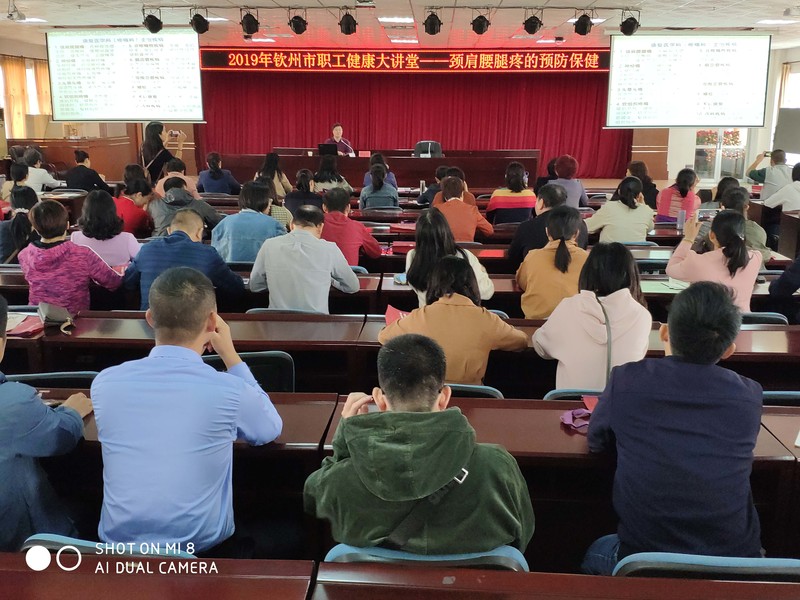 2019年11月14日上午,我集團(tuán)公司組織職工參加市總工會(huì)、市健康教育中心舉辦的“頸肩腰腿疼的預(yù)防保健”的職工健康知識(shí)公益講座,講座由欽州市中醫(yī)醫(yī)院康復(fù)醫(yī)學(xué)科主任、醫(yī)學(xué)博士、副主任醫(yī)師鐘志年主講。鐘主任通過視頻講解、現(xiàn)場示范,為大家傳授頸肩腰腿疼的預(yù)防保健知識(shí),全體參加人員踴躍參與預(yù)防保健鍛煉動(dòng)作的互動(dòng)。