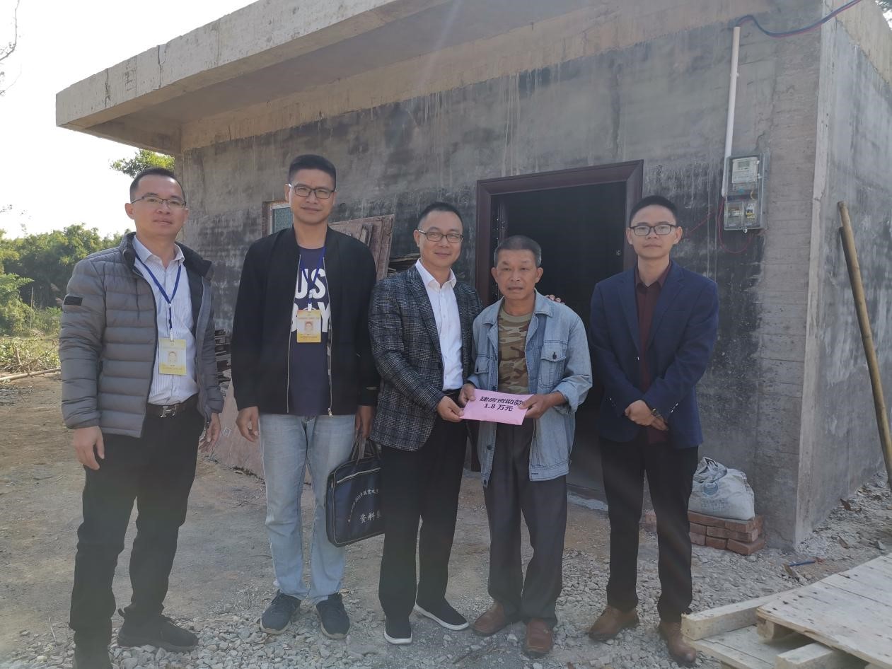 2019年11月14日上午,集團(tuán)公司董事長趙文博一行在新禾村陳基茂新建的房子前,舉行了一場建房捐資活動(dòng),為貧困戶陳基茂送上了1.8萬元的建房資助款,為其新房建設(shè)解決燃眉之急,用點(diǎn)滴真情助力脫貧攻堅(jiān)。新禾村兩委干部、駐村工作組、建房施工隊(duì)代表共同見證了建房捐資儀式。