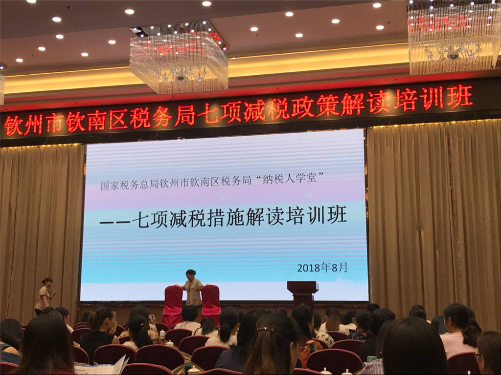 根據(jù)欽州市欽南區(qū)稅務(wù)局通知,我部員工于8月21日上午9點(diǎn)到金灣大酒店參加了稅務(wù)局七項(xiàng)減稅政策解讀及辦稅便利通操作培訓(xùn)。為