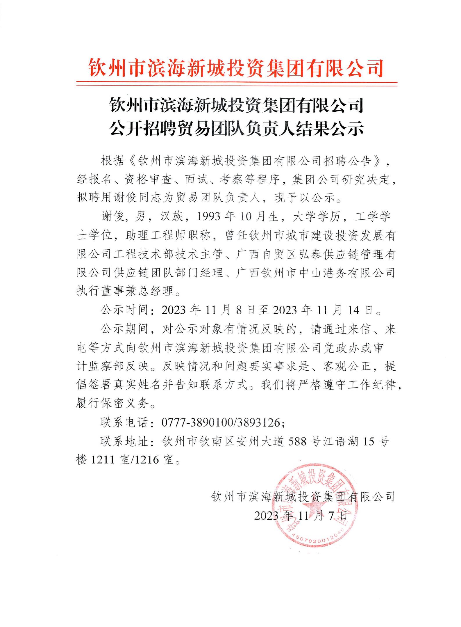 公開招聘貿(mào)易團隊負責人結(jié)果公示