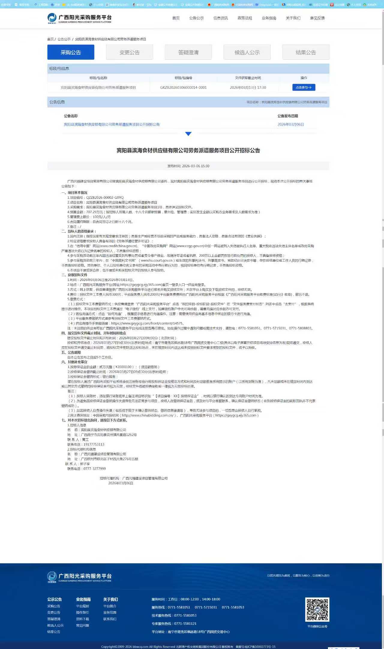 廣西元強建設(shè)項目管理有限公司關(guān)于賓陽縣濱海食材供應(yīng)鏈有限公司勞務(wù)派遣服務(wù)項目的更正公告(二)