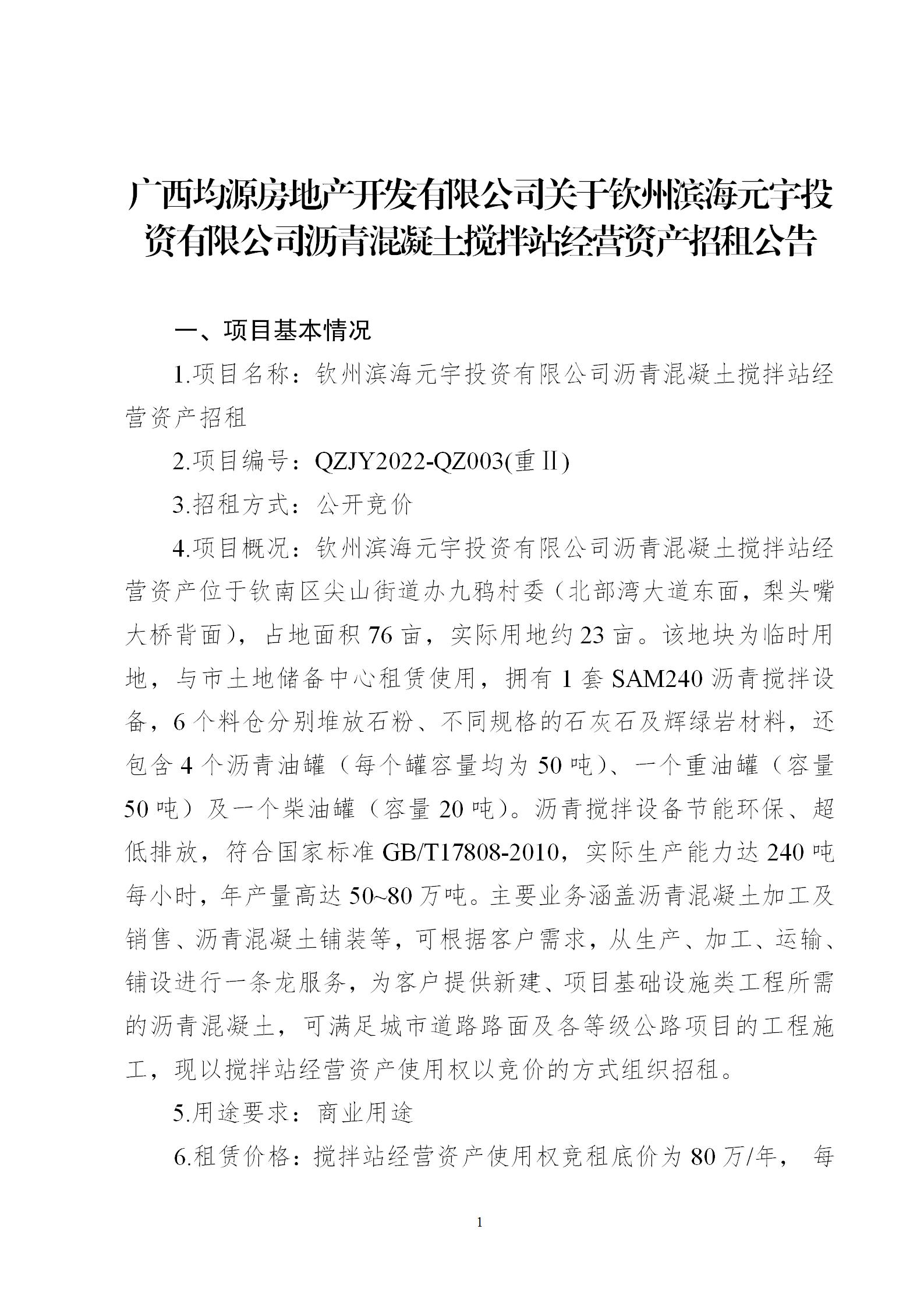 廣西均源房地產(chǎn)開發(fā)有限公司關(guān)于欽州濱海元宇投資有限公司瀝青混凝土攪拌站經(jīng)營(yíng)資產(chǎn)招租公告