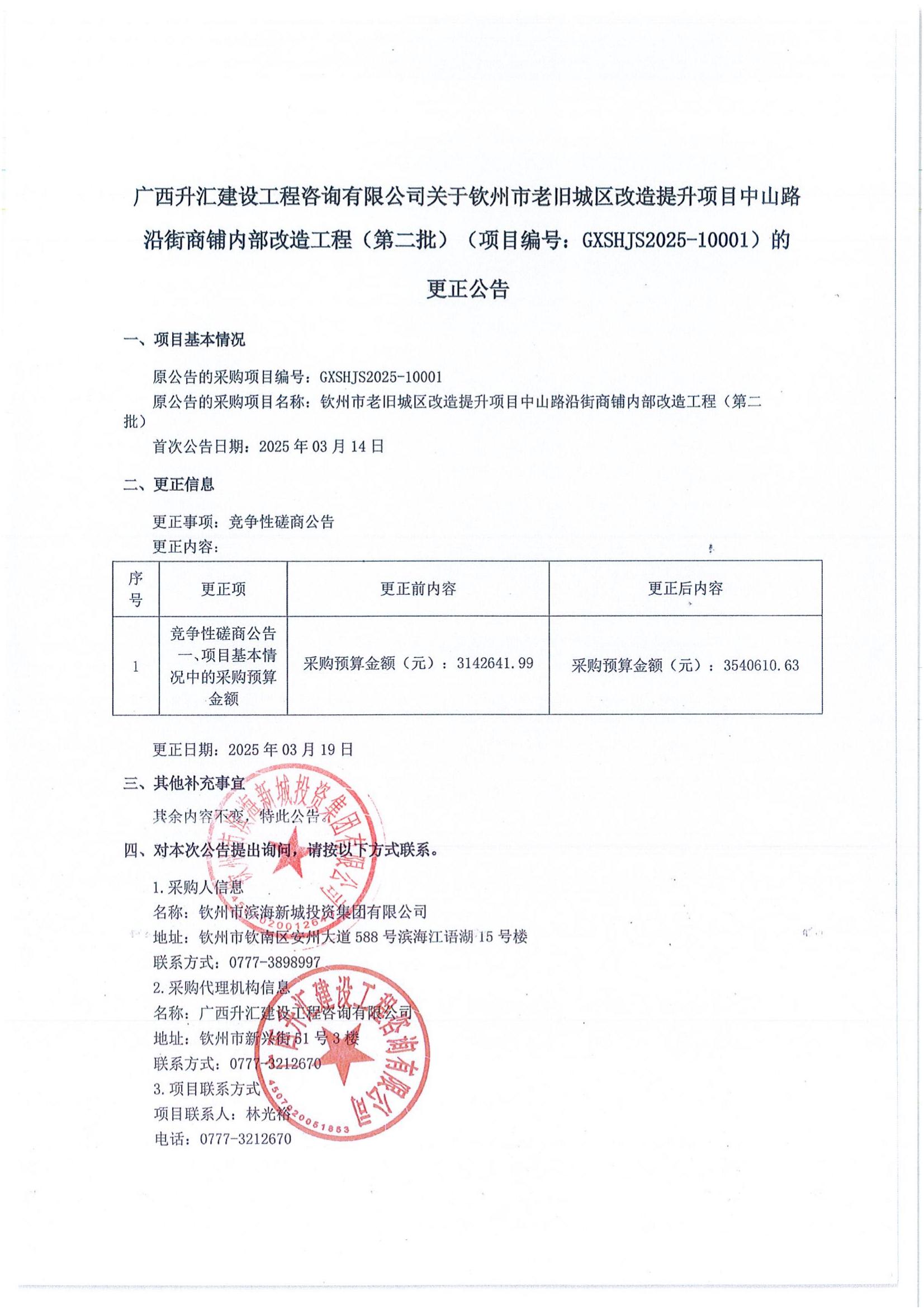 欽州市老舊城區(qū)改造提升項(xiàng)目中山路沿街商鋪內(nèi)部改造工程(第二批)(項(xiàng)目編號(hào):GXSHJS2025-10001)的更正公告