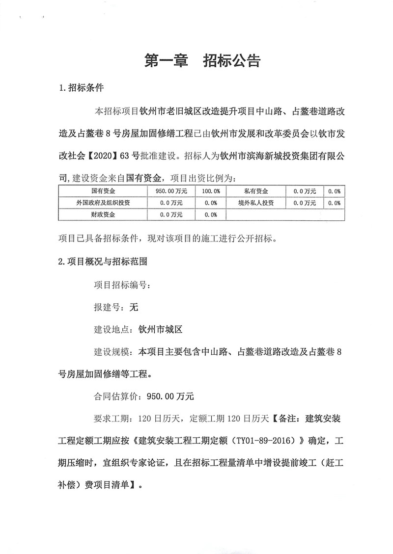 欽州市老舊城區(qū)改造提升項(xiàng)目中山路、占鰲巷道路改造及占鰲巷8號(hào)房屋加固修繕工程