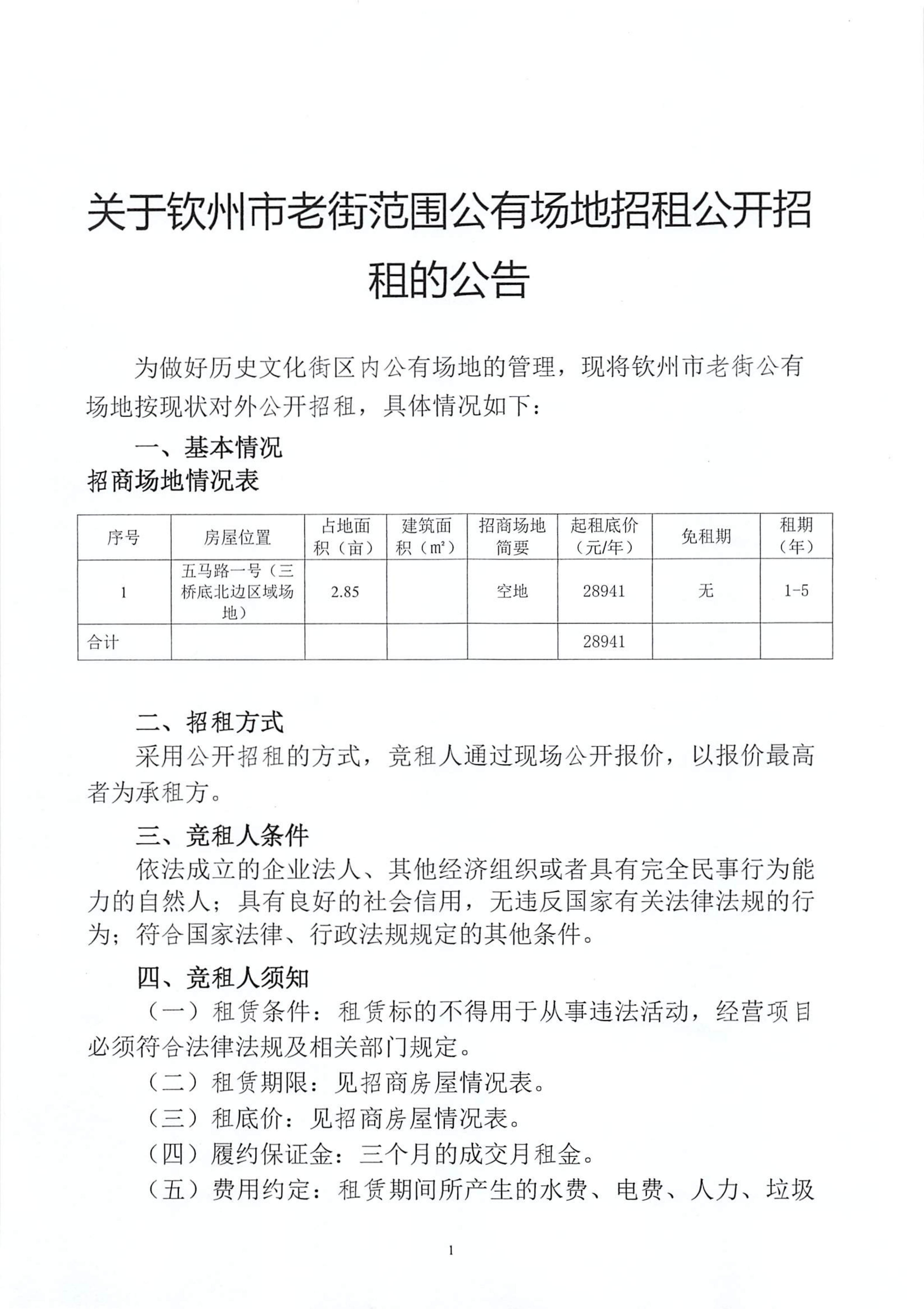 關于欽州市老街范圍公有場地公開招租的公告(五馬路一號三橋底北邊區(qū)域場地)